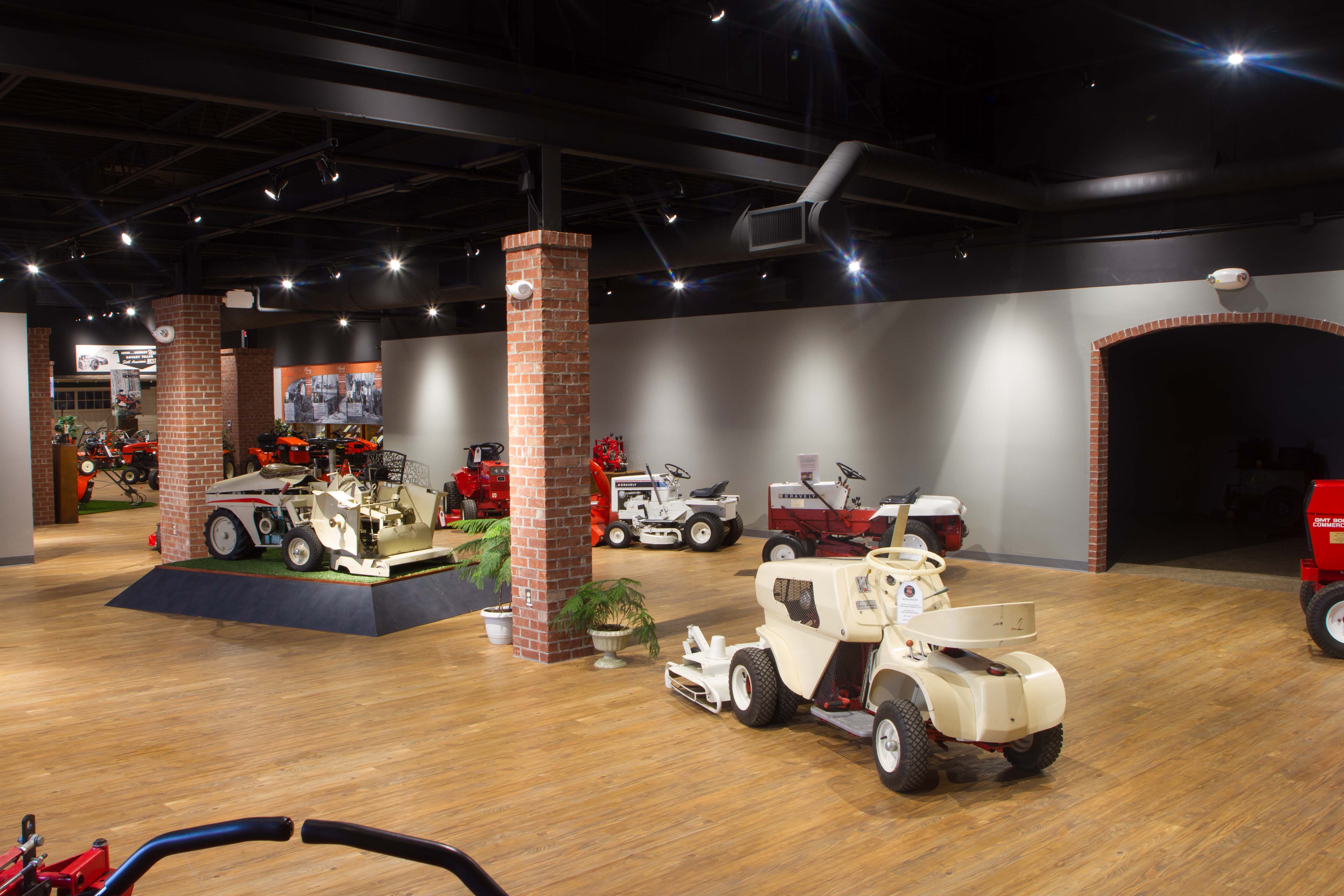 The central feature of the new display is a replica of the red-brick façade and entryway to the original Gravely factory built in 1922 in Dunbar, W.Va. (photos of both attached). Visitors pass through the "plant" door to view several unique items and historical wall murals of the inside of the factory in the early 1900s.