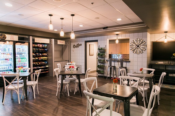 The cafe is located in Ariens Company's corporate headquarters in Brillion, Wisconsin, and is open to any employee of the company. Konop Companies, Inc., stocks and maintains the cafe, bringing in fresh fruit and meal options weekly. Also included in the cafe is a gourmet coffee machine, kitchen with microwave and plenty of seating.