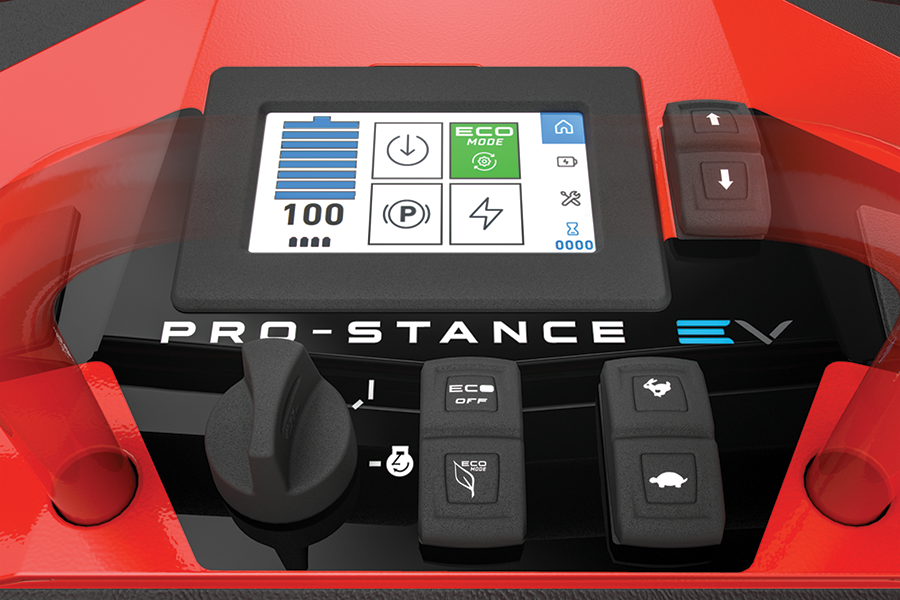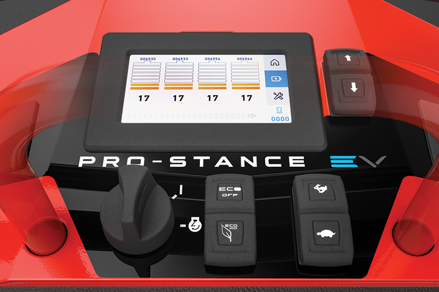 That feedback is communicated through three screens on a 4.2-inch LCD monitor in the control panel. In normal conditions, operators have access to the home screen that shows machine status and the overall charge, a power screen that shows individual battery charge levels and a maintenance screen that shows fault and warning codes. There are also other screens for special conditions.